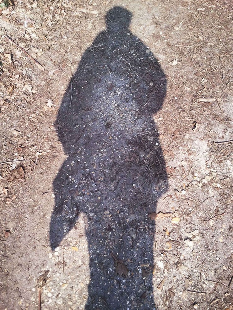 Ma série sur les ombres, tout en s’inscrivant dans la question de l’identité et de l’identification du réel, représente un travail centré plus particulièrement sur l’être et sa réalité, l’être et son ubiquité, l’être et sa porosité au monde environnant (qui est aussi le sujet de mes pochoirs), être aux formes évolutives, en projection au-delà des limites de son corps et dans l’entrelacement des impressions clandestines qui le traversent, être molécules d'esprit dans l'espace.