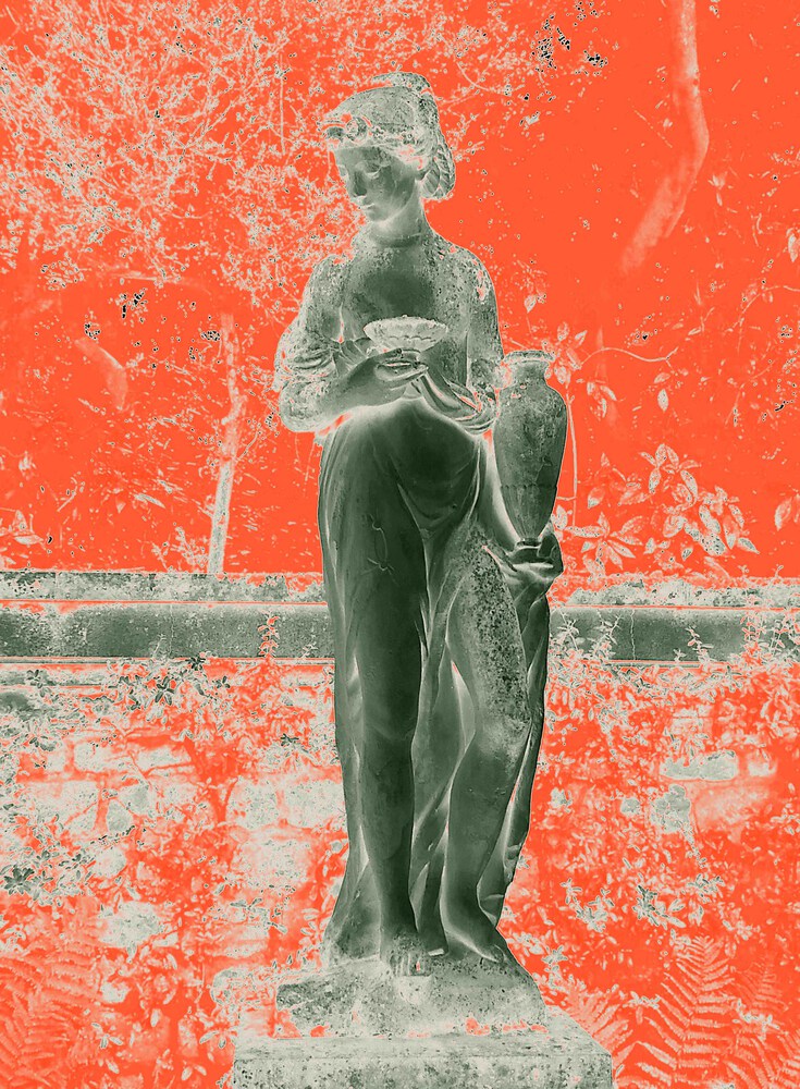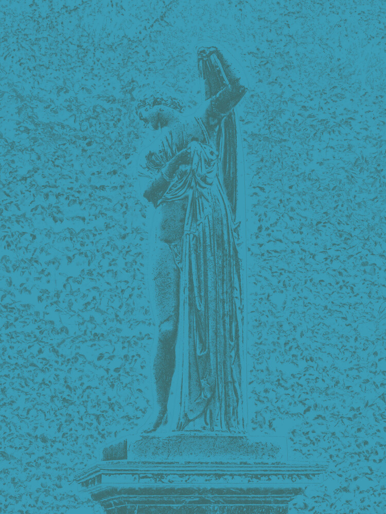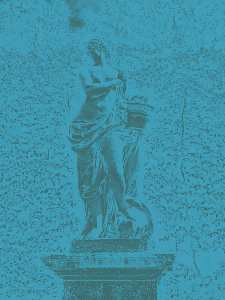 Cette série photographique est toute particulière. Elle est jumelle de mon travail plastique FIGURES, se déployant à la manière d'un spin-off, donnant un développement propre à ce qui n'était initialement qu'un matériau de départ pour mes dessins. Travailler directement sur ces photographies de statues anciennes avec les outils de retraitement d'images contemporains, m'offre une autre manière d'entrer en communion avec leur sensualité dansante, de ressentir leurs lignes et volumes, d'approcher leur intimité et de transmettre ce ressenti.